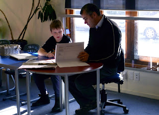 This is Warren and me having a discussion about my go-kart. |